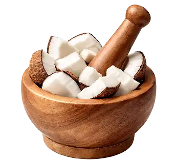 Narikela is rich in fatty acids and antioxidants that nourish the scalp, strengthen hair, and restore natural shine.